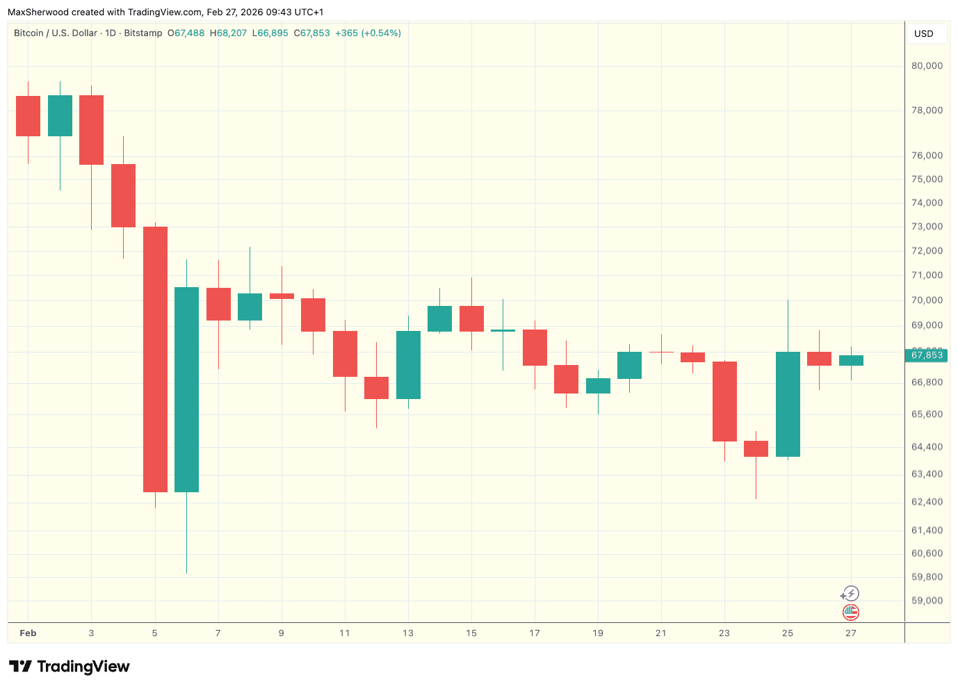 Markets-wise this month was “more of the same” bear market downtrend, starting with a spicy liquidation event on Feb 5th. I am reminded that bear markets are not a steady march downwards, but rather a staircase. In 2022 it was largely event-driven, like the collapse of Terra, Three Arrows, FTX. This time, there doesn’t seem to be any rhyme or reason to the timing of some of these downward moves, other than breaking key support levels.